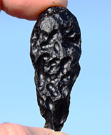 Tektite is a beautiful dark glossy transformed remains of a giant Asteroid (in various aerodynamic shapes and sizes). It emits a powerful orange aura. Although it looks externally black (because of the highly concentrated LIGHT inside), it is orange or yellow in thin areas and sometimes even a very gentle green. Due to the high hardness of its structure, it is a solid Stone. Making a hole or a notch with a diamond drill or grinder is hard without water.